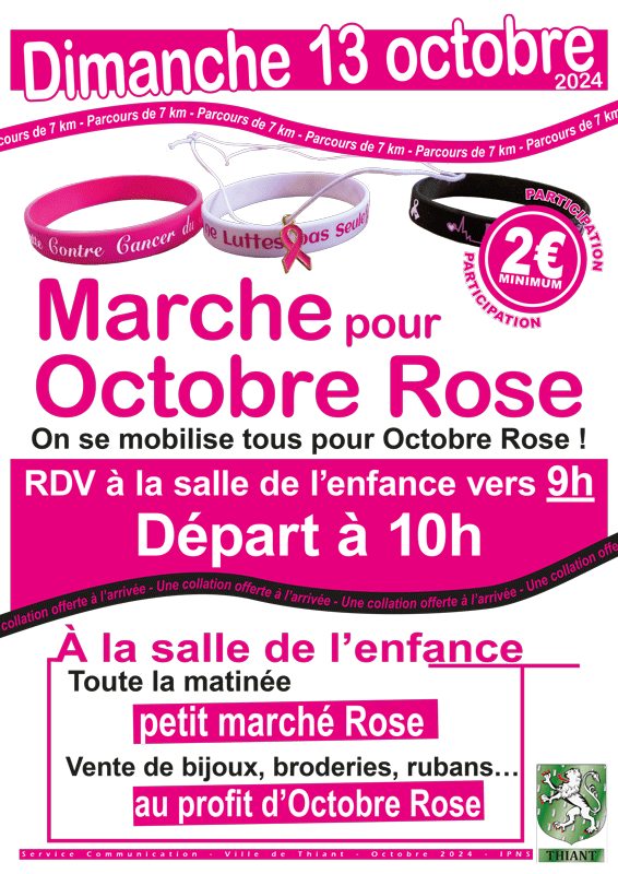 Toute la matinée à la salle de l’enfance : petit marché Rose, vente de bijoux, broderies, rubans… au profit d’Octobre Rose