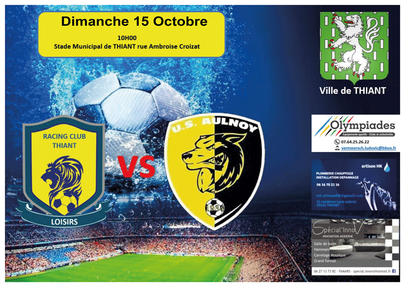 Emplacement Le RCTL reçoit l’U.S. AulnoyDimanche 15 octobre à 10hStade Municipal de Thiant rue Ambroise Croizat Date/heure Date(s) - 15/10/202310:00 - 12:00 CatégoriesAssociations Sportives
