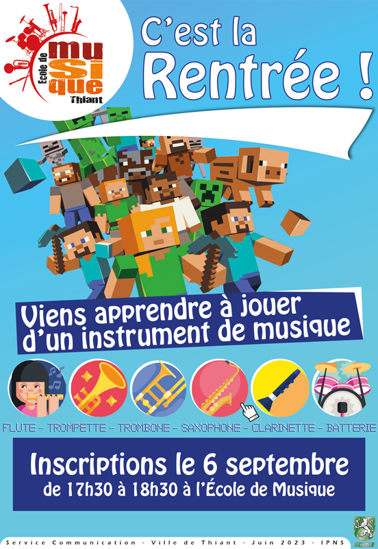 Quand 06/09/2023 17 h 30 min - 18 h 30 min Ajouter au Calendrier Télécharger ICS Calendrier Google iCalendar Office 365 Outlook LiveOù Ecole de Musique rue Anatole France, Thiant, France, 59224, NordType d’évènement batterie, clarinette, école de musique, flûte traversière, inscription, instrument, musique, orchestre, saxophone, Thiant, trombone, trompetteClique sur l’image pour télécharger le bulletin d’inscription ou clique ici